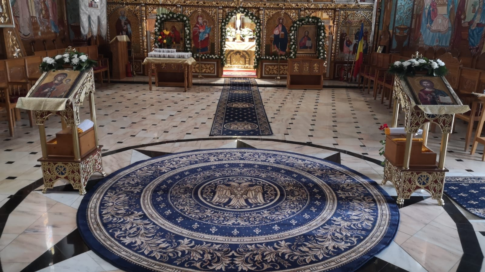 Un covor pentru biserică, cu un simbol ca vulturul bicefal este solemn și plin de semnificație. Imaginați-vă un covor rafinat, cu un design subtil ce prezintă vulturul bicefal în mijloc, înconjurat de motive tradiționale și o bordură elegantă. Materialul este durabil și ușor de întreținut, potrivindu-se perfect pentru utilizarea într-un spațiu sacru. Această piesă ar adăuga o notă de solemnitate și respect în interiorul bisericii, reprezentând în mod adecvat valorile și tradițiile ei.