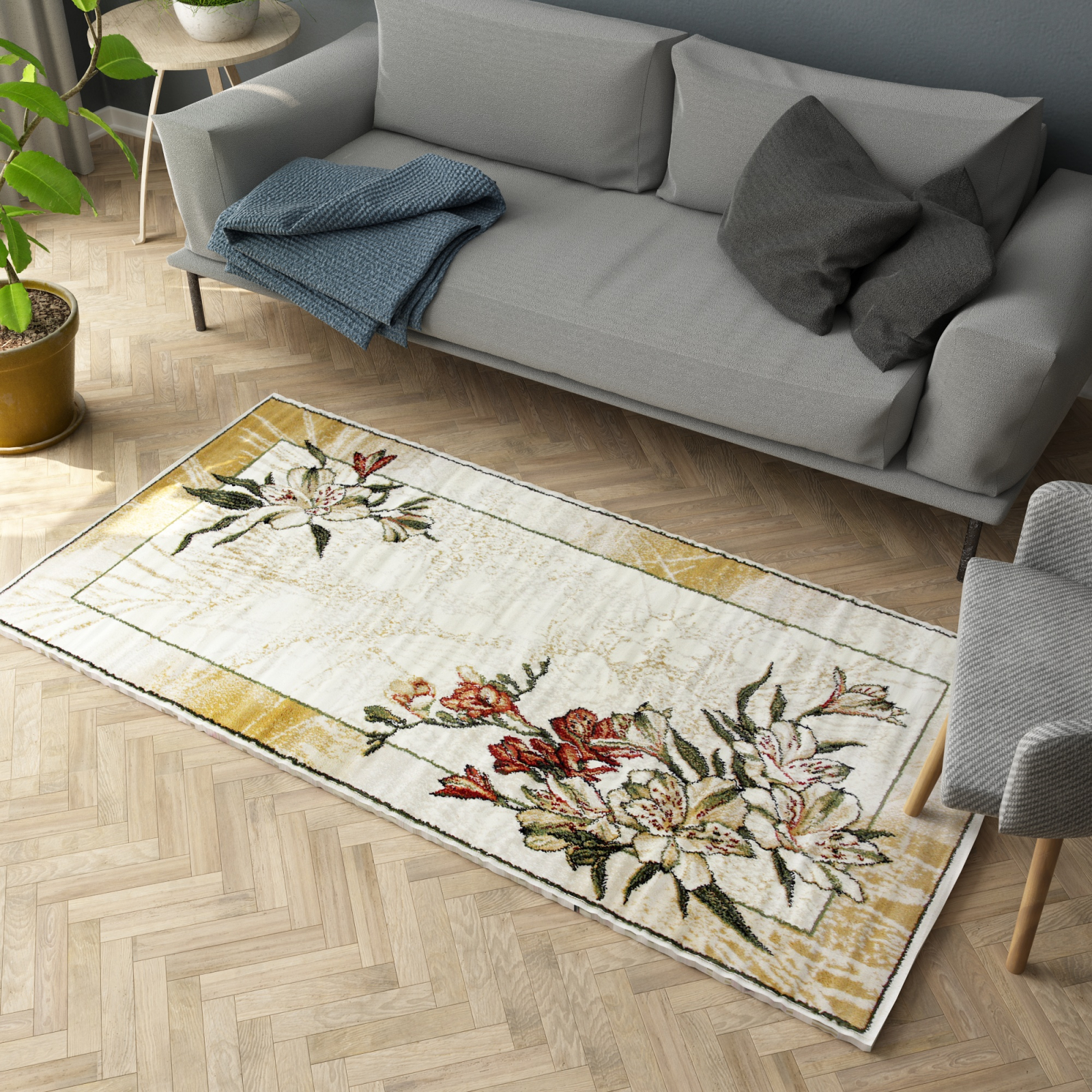 Covor Floral, Lotos 1563, Crem, Diverse Dimensiuni