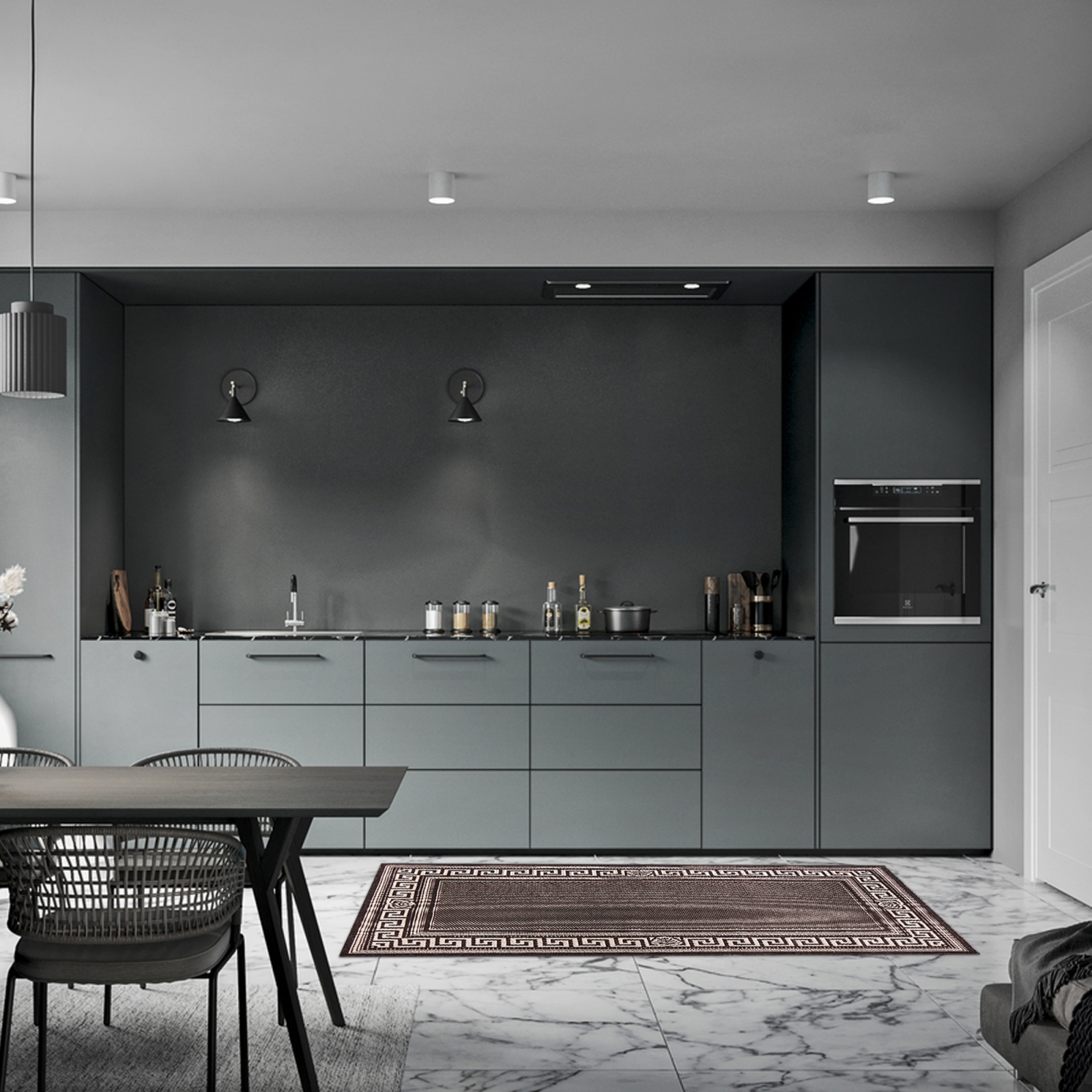 Un covor de tip iuta, care poate fi folosit cu dedicatie in bucatarii dar, si in holuri sau balcoane.